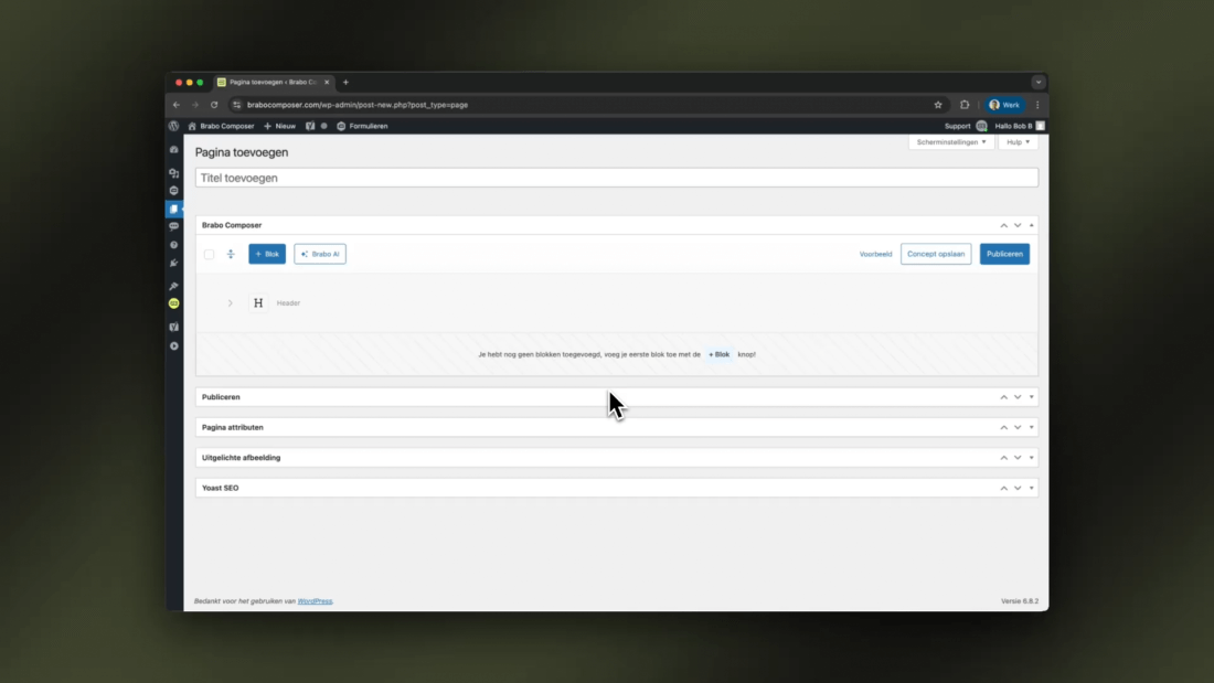 Brabo Composer is een modulaire content-editor voor WordPress, ontwikkeld door Studio Brabo. Het is een gebruiksvriendelijke en krachtige laag bovenop WordPress waarmee je eenvoudig pagina’s opbouwt met vooraf ontworpen blokken. Alles sluit automatisch aan op je huisstijl, zonder dat je technische kennis nodig hebt.